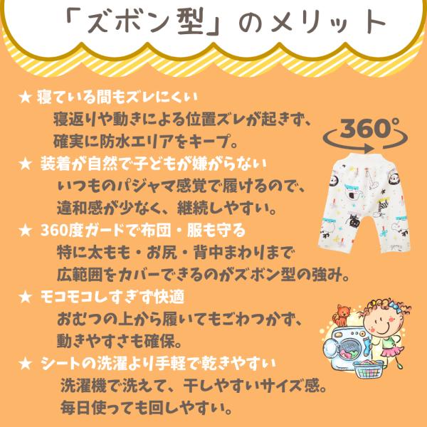 おねしょズボン S おねしょ対策 トレーニングパンツ キッズパジャマ 子供 男の子 女の子 保育園 ズボン型 トイレトレーニング しっかり 防水 おねしょ