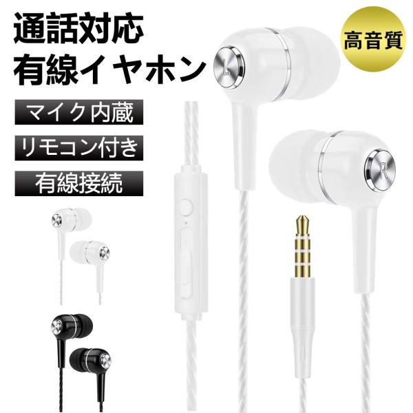 イヤホン イヤホン有線 インナーイヤー型 マイク内蔵 リモコン付き 3.5mm 音楽 通話 iPhone Android タブレット スマホ 送料無料