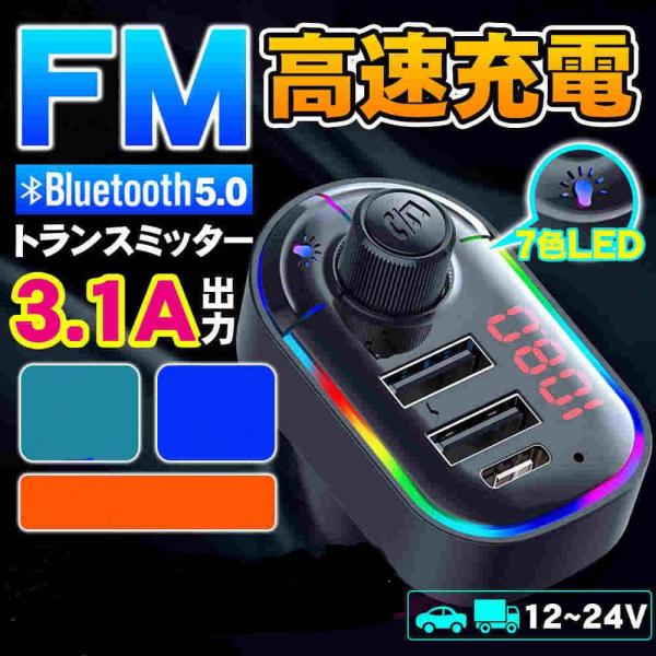 FMトランスミッター bluetooth5.0 高音質 usb type-c充電 シガーソケット カーチャージャー 車載充電器 iphone Android