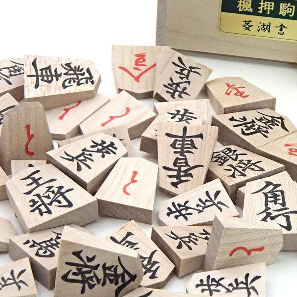 将棋駒は新発売の木製楓押し駒裏赤(四大書体の菱湖書体)桐箱入り