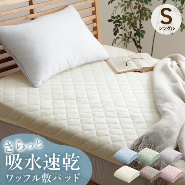 敷きパッド シングル 洗える ワッフル敷パッド 100×200cm 抗菌防臭 吸水速乾 オールシーズン 年中 敷パッド 新生活 おしゃれ 可愛い ニュアンスカラー