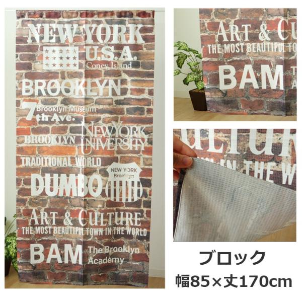 ・カジュアルなデニム風やレンガ調の暖簾です。