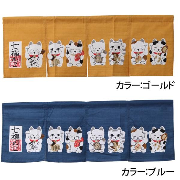 のれん 暖簾 おしゃれ 七福ネコ 85×30cm 猫のれん ねこ柄のれん 和風 モダン 猫グッズ ショート丈 招き猫