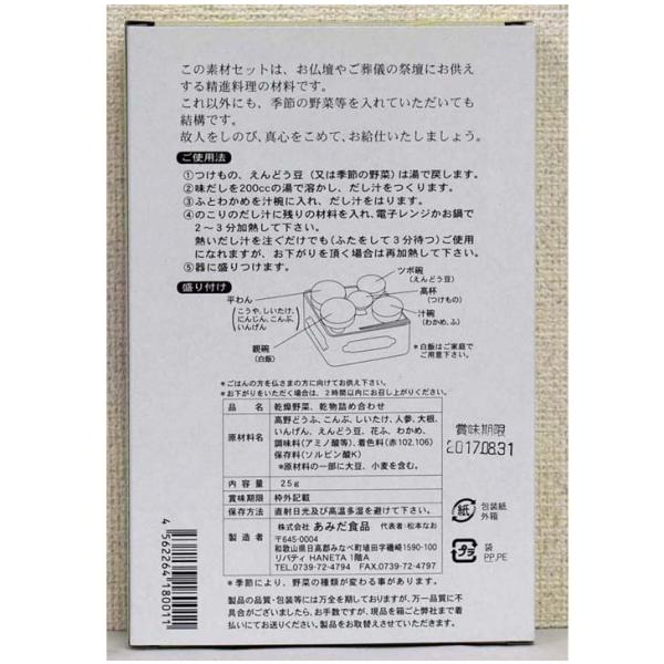1箱 素材セット 霊具膳 仏膳椀セットのおかずキッド「ご先祖さま」