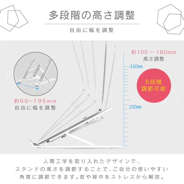 ノートパソコンスタンド pcスタンド 折りたたみ式 軽量 6段階調整可能 タブレットPCスタンド アルミ製 持ち運び
