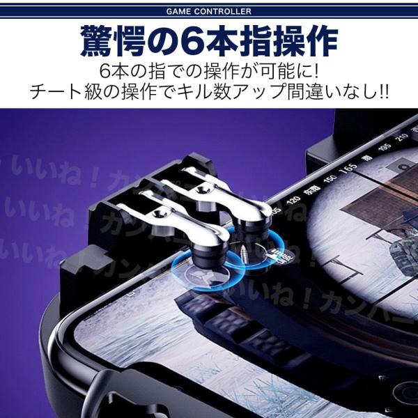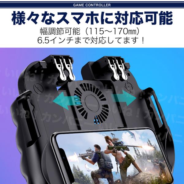 荒野行動 PUBG COD コントローラー 6本指 冷却ファン スマホコントローラー サイズ調整 連続射撃 連打機 ボタン