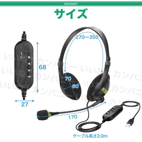 ヘッドセット マイク USB 両耳 有線 軽量 Windows Mac 在宅 テレワーク リモートワーク Skype ZOOM