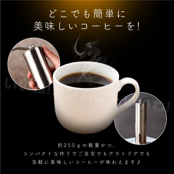 ・軽量コンパクトサイズでどこでもお手軽に使える手動のコーヒーミルです。