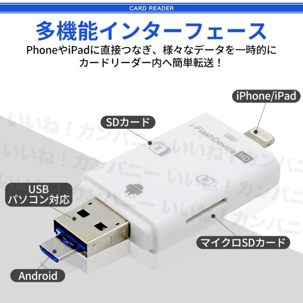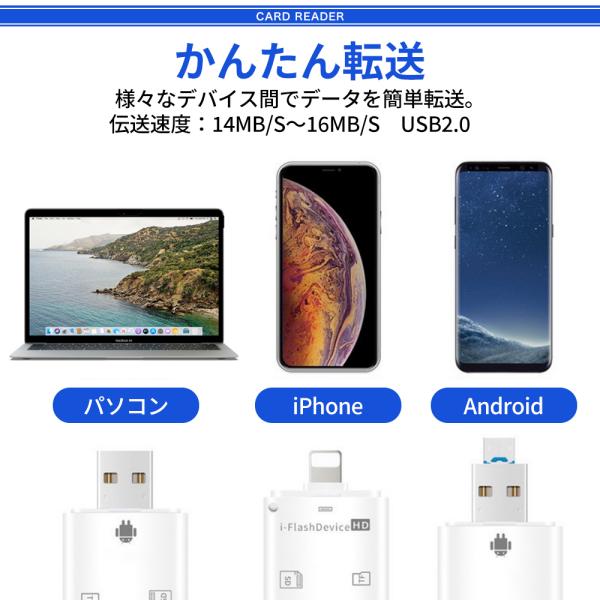 SDカードリーダー iPhone ipad usb android apple Micro 説明書付き マイクロUSB FlashDevice スマホ データ 転送 保存