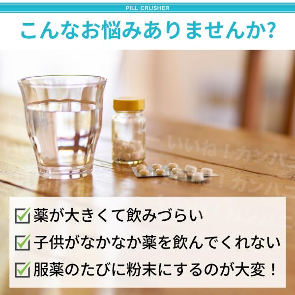 ピルクラッシャー 錠剤クラッシャー 粉末化 粉にする 錠剤粉砕機 粉砕 薬 サプリ 高齢者 子供 ペット 犬 猫