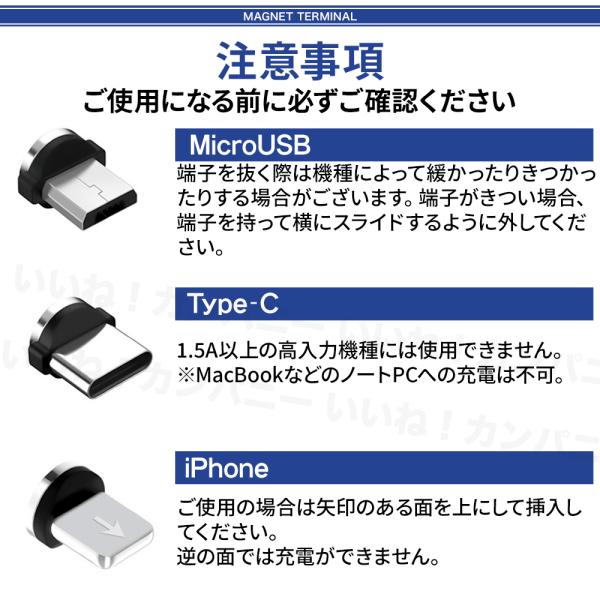 マグネット端子 2個セット 充電端子 充電コネクタ Lightning Type-C microUSB マグネットケーブル
