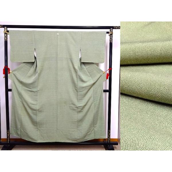 中古 リサイクル 正絹着物 袷 シルク 江戸小紋 鮫小紋 若草 着丈152.5cm 944 ggp