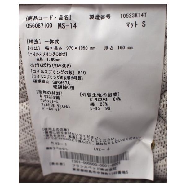 フランスベッド マットレス シングル 高密度・高耐久性マルチラススプリングマットレス MS-14シングル(S)