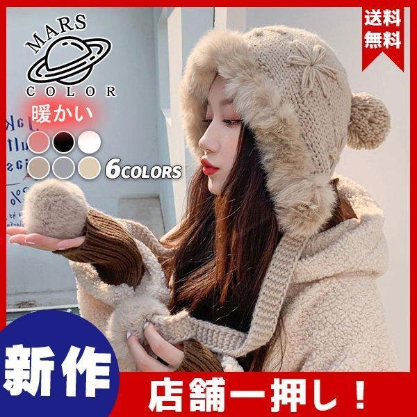 !耳あて付き 可愛い オシャレ 防寒帽子 レディース ニット帽子 キャップ 小顔効果 暖かい ポンポン付き もこもこ 耳あて付き