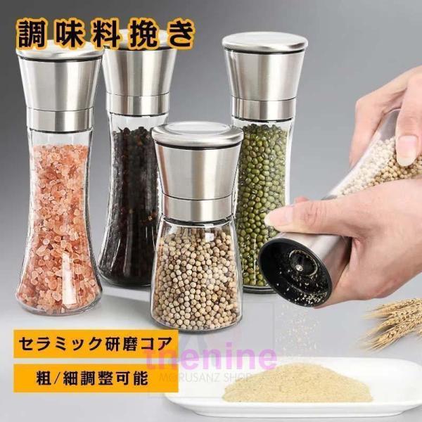 ペッパーミル 2個セット手動 調味料挽き ソルトミル 結晶塩 ペッパー 大容量 こしょう スパイス 香辛料 粗さ調節 研磨 塩 胡椒 粉砕機 塩挽き