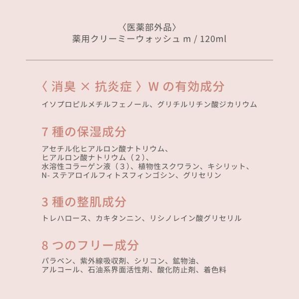 殺菌・消臭成分、抗炎症成分、7種の保湿成分、3種の整肌成分配合の
