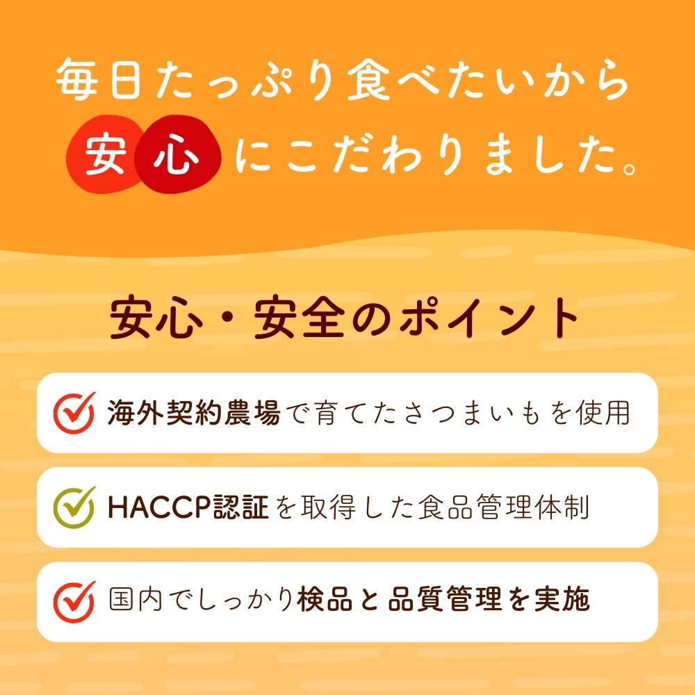 自然の甘みでヘルシーなおやつ。小さなお子様からご年配の方までお召し上がりいただけます。