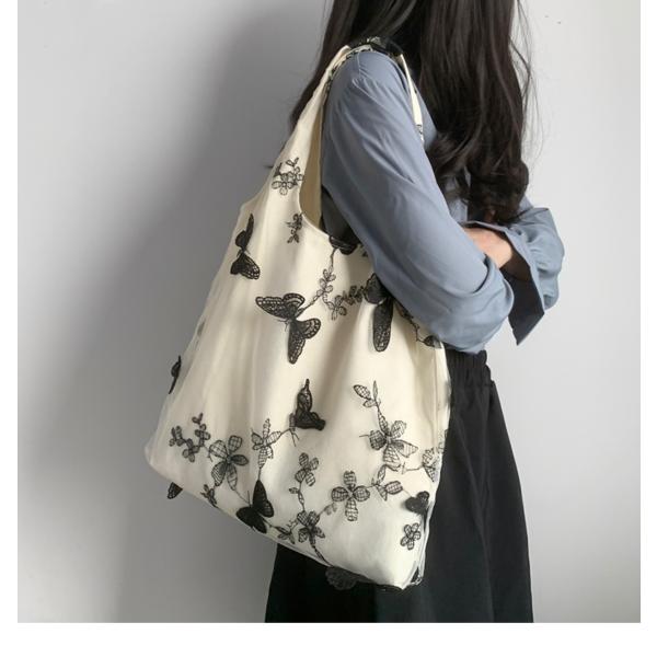 トートバッグ カバン キャンバス 帆布 蝶柄 蝶 チェリー リーフ アート 個性的 レディース おしゃれ 通学 散歩 出会い ファッション