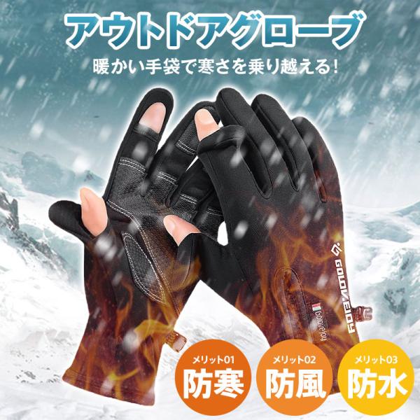 【最大P10倍】 手袋 メンズ 防寒 スマホ スマートウォッチ 対応 自転車 指先開閉 防風 防水 冬 撥水 グローブ バイク 裏起毛 滑り止め? タッチパネル