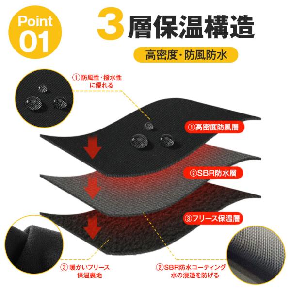 ・3層保温構造で高密度・防風防水。