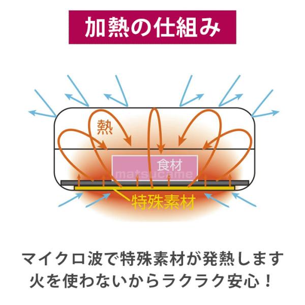 ■底面の特殊シリコーンゴムがマイクロ波を熱に変換して中はふっくら外はカリッと焼きあがる!