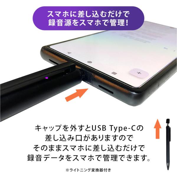 キャップを外すとUSB Type-Cコネクタが現れる便利なボイスレコーダーペンです。