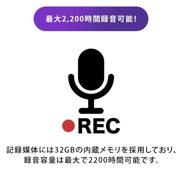 32GBの内蔵メモリを搭載し最大2200時間の録音が可能。