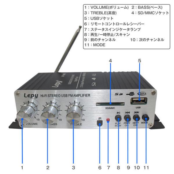 ステレオ アンプ オーディオ リモコン付 LEPY製 Hi-Fi 多機能 SDカード USB MP3 FM LEPY製 LP-A68 アナログ DC12V