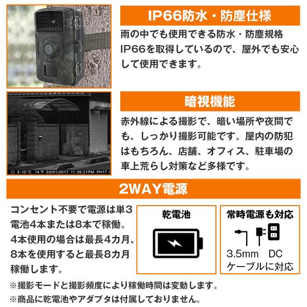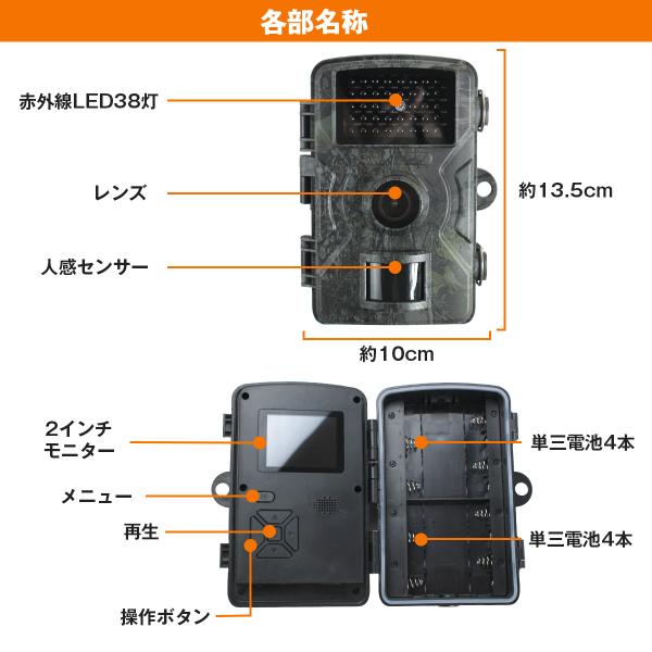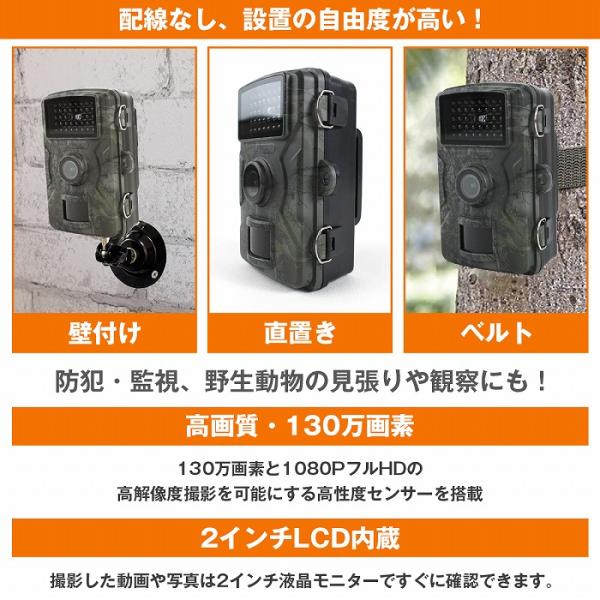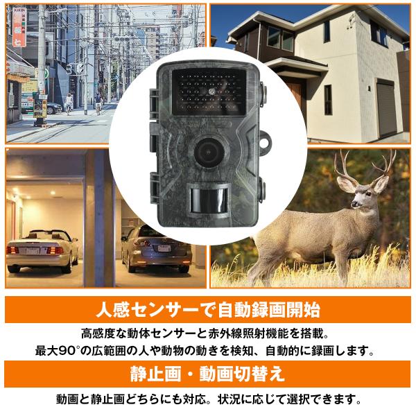 トレイルカメラ 動体検知 防犯 カメラ 1080P 人感センサー 野生動物 駐車場 倉庫 別荘 夜間 暗視 自動録画 防塵 防水 狩猟 畑
