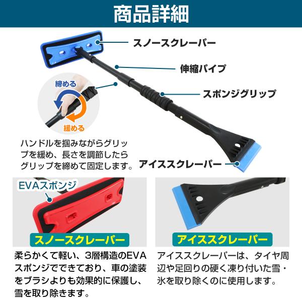 ★雪国の必需品 車用 スノーブラシ 雪落とし 雪かき ワイパー 車 雪下し ゴム ブラシ 雪 氷 青/赤 2in1 雪掻き 雪ブラシ 氷取り 結氷取り
