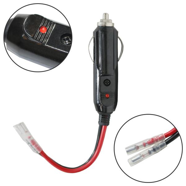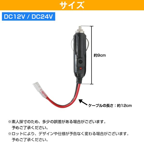 車のシガーソケットでお使い頂けるDC12V/DC24V兼用の配線つきシガープラグです。