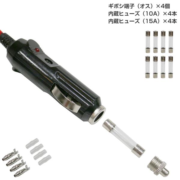 2個 セット 12V 24V 兼用 シガーライター シガーソケット 延長 DIY コード 車 電源 プラグ アダプタ ヒューズ 10A DC タバコ