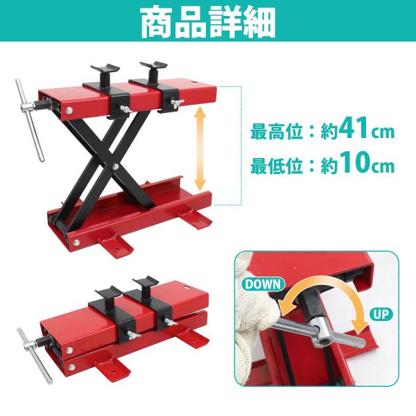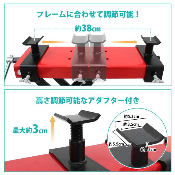 バイク ジャッキ 耐荷重 500kg バイクリフト メンテナンス スタンド モーターサイクルジャッキ アダプター付き 修理 整備 赤