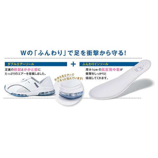 モズ ナースシューズ 白 黒 疲れにくい スリッポン 静音 おしゃれ 軽量 保育士 介護士 靴 アンファミエ [moz] 2WAYナースダブルエアーシューズ(高反発中敷付き)