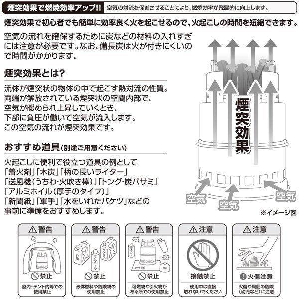 空気の対流を促進して燃焼効率を高め、短時間で着火できます。