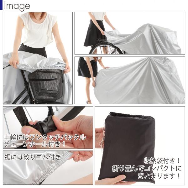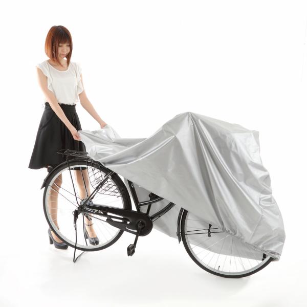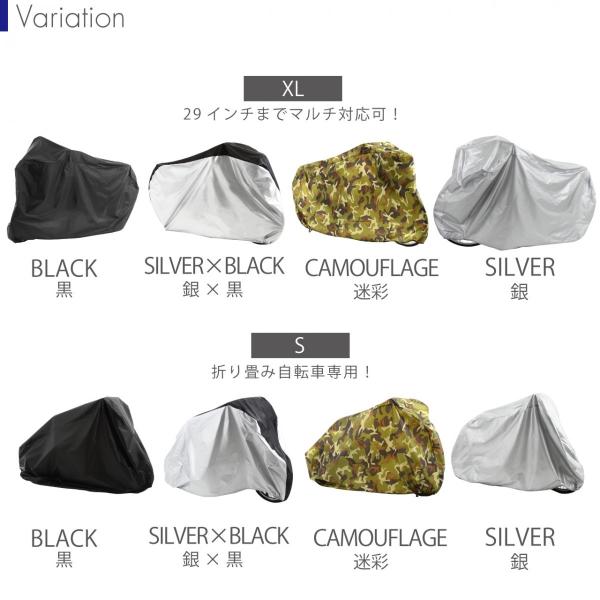 素材は、ナイロン高密度コーティング仕様。雨風に強くゴミや摩擦からしっかり守ってくれる素材です。薄手で軽量なので、装着しやすく携帯にも便利です。裾にはしぼりゴムが付いておりますので、風によるバタつきを防いでくれます。また裾の高い伸縮性により盗難防止にも役に立ちます。使用後は、付属の専用収納袋あり!未使用時や携帯時にコンパクトに収納可能です。自転車カバーは、立体構造自転車をすっぽり覆うことができます。電動自転車、マウンテンバイクや前後子供乗せ自転車など、あらゆる自転車に対応の設計です!カラーも豊富な14色展開!基本ベースの黒、黒×銀、迷彩、銀の4種類にネイティブカラーを追加!愛車のサイクルカバーに是非オススメ!送料無料!