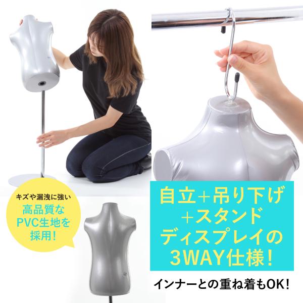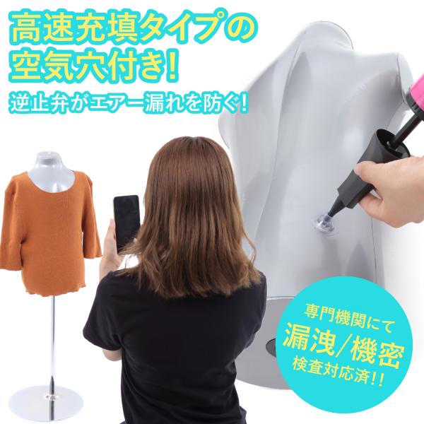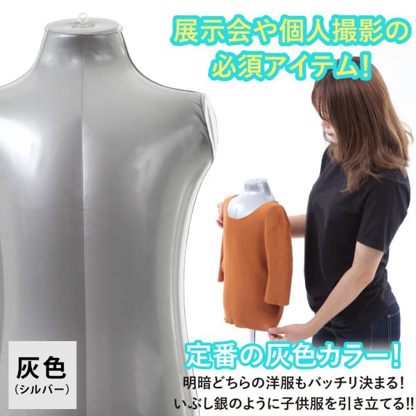 エアーマネキン マネキン トルソー 上半身 ボディ 男性 女性 メンズ レディース エアー 空気 式 服 自立 吊り スタンド ディスプレイ 撮影 灰色 取説付