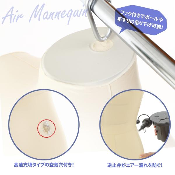 エアーマネキン マネキン トルソー 全身 ボディ 女性 レディース エアー 空気 式 服 アパレル 自立 吊り スタンド ディスプレイ 等身大 撮影 用 肌色 取説付