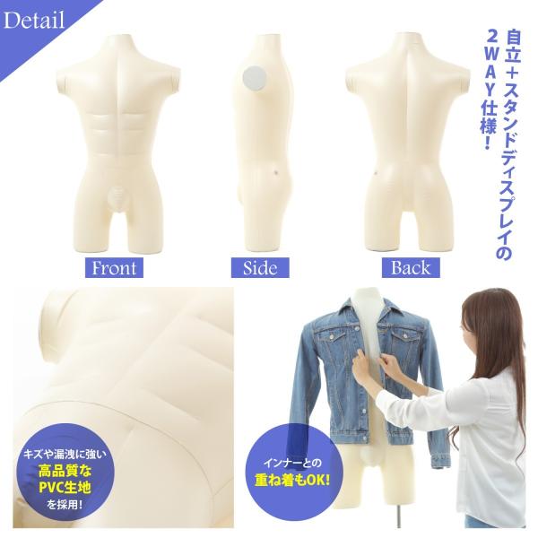 エアーマネキン マネキン トルソー 上半身 ボディ 男性 メンズ エアー 空気 式 服 アパレル 自立 吊り スタンド 卓上 ディスプレイ 等身大 撮影 用 肌色 取説付