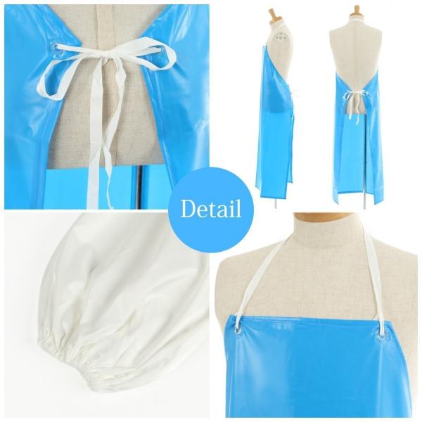 イノベーション・ファクトリー247は、インポートセレクトショップです。長年の調査からプロ仕様として設計されたエプロンになります。飲食店や食品加工工場などへの採用実績は多数ございます。防水仕様により、丈夫な作りになっております。足元まで全てカバー出来るようにロング丈(110cm)を採用しました。飲食店での厨房など業務用としての用途は勿論、アウトドア、釣り、洗車、農作業、食品産業、漁業など水を使う作業全般に適しております。表面、裏面ともに同色(透明・青・黄)となっております。これだけ鮮やかな色味は他ではなかなかございません!!様々なシーンに対応可能な防水・防油・防汚エプロンです。PVC( ポリ塩化ビニル)を素材に用いておりますので、経年劣化や冬場の亀裂なども心配無用!耐久性も抜群です。腕用防水カバー(カフ袖)も付属しております。
