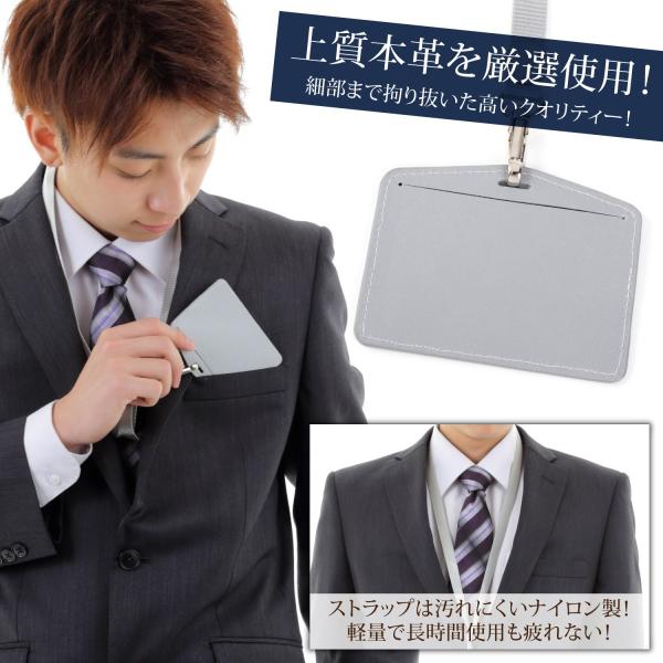id ic カードケース カードホルダー 名刺 ホルダー 社員証ケース カード入れ suica pasmo パスケース 革 ブランド 横 薄型 2枚 収納 ネック ストラップ 付