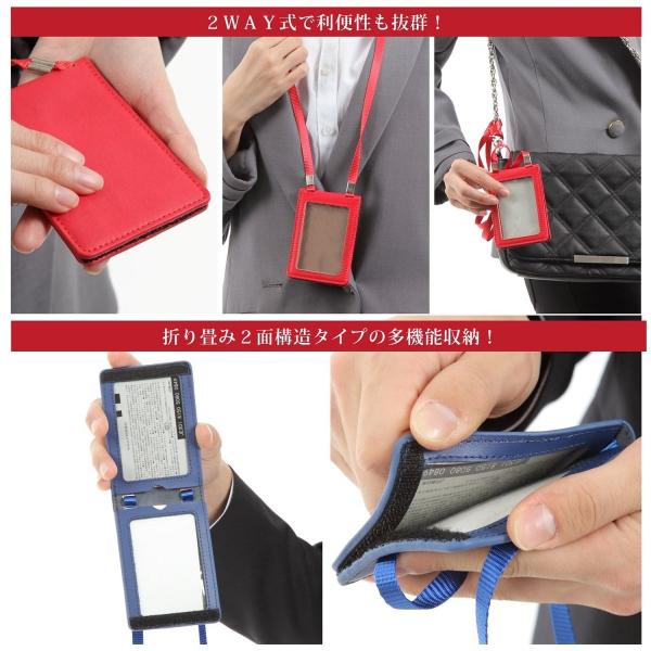 id ic カードケース カードホルダー 名刺 ホルダー 社員証ケース カード入れ suica pasmo パスケース 革 ブランド 横 薄型 2枚 ネック ストラップ アウトレット