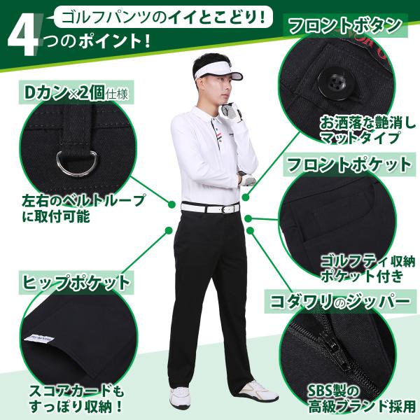 ゴルフパンツ メンズ ゴルフウェア 男性 服装 ゴルフ ブランド ロング ストレッチ 縦ポケ ゴルフズボン ゴルファー ボトムス 美脚 速乾 秋冬 秋 ティ5本付