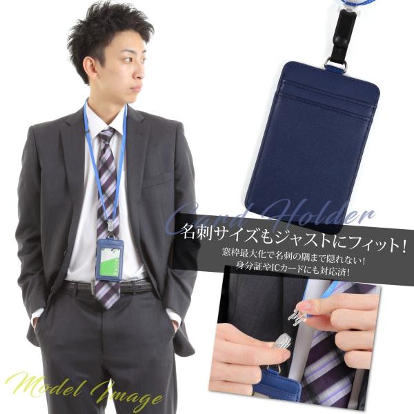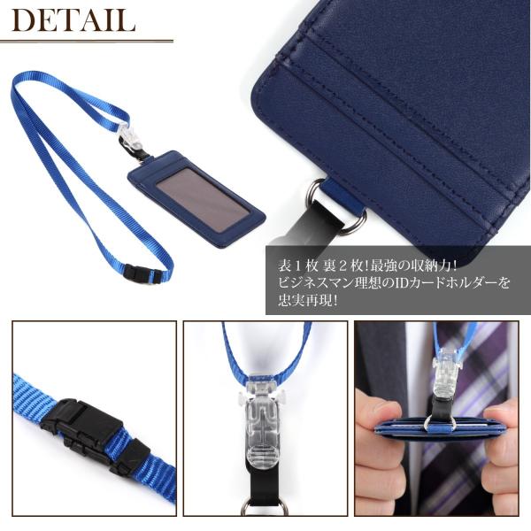 id ic カードケース カードホルダー 名刺 ホルダー 社員証ケース カード入れ suica pasmo パスケース 革 ブランド 横 薄型 3枚 収納 ネック ストラップ 付