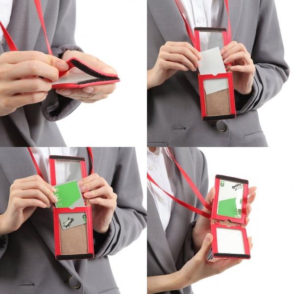 id ic カードケース カードホルダー 名刺 ホルダー 社員証ケース カード入れ suica pasmo パスケース 革 ブランド 縦 薄型 4枚 ネック ストラップ アウトレット