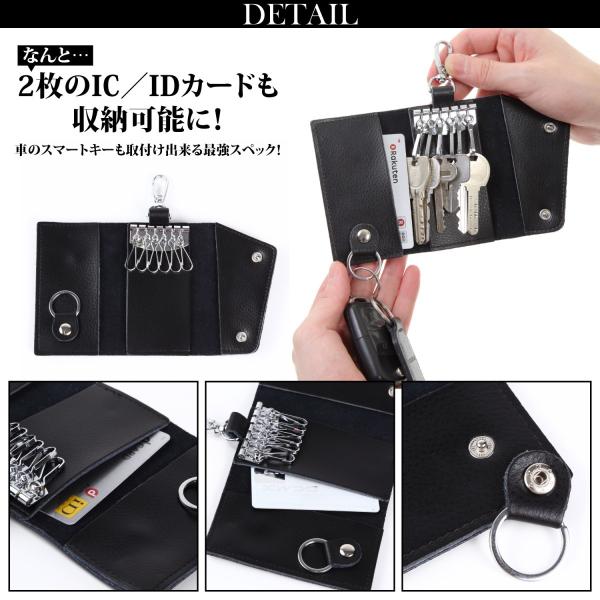 キーケース スマートキー カードキー パスケース 定期入れ 本革 レザー 6連リング 三つ折り 革 ブランド 名入れ 小銭入れ 札入れ ナスカン 付き