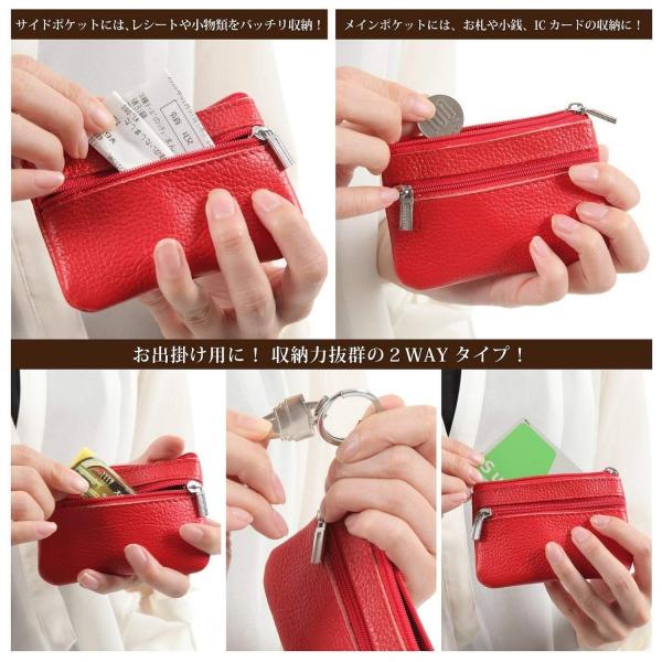 トートバックやクラッチバック、ポーチとの相性抜群!手のひらサイズに縮小化した牛革仕様のお洒落コインケース!どんなシュチエーションにもマッチングした全13色カラー展開!ユニセックス!外出用の小銭入れはこれがあれば事足ります!色鮮やかなカラーを揃えた業界No.1の豊富なバリエーション類!外出用の各種バック類との相性抜群!艶のある素材感で風合いも魅力的!使えば使うほどに本革特有の革味が滲み出ます!バックに合わせて小銭入れのカラーも変えるのもお洒落さん!表面は平滑で強い強度を誇る本革素材!裏面は小銭の摩擦に強いポリエステル素材を採用!チラッと見える革製チェーンがお洒落でカワイイ!お買い物シーンを想定した2WAY仕様で使い勝手も抜群!お洒落な革製チェーンにキーリング付き!ジッパーもスムーズで滑らかな動きを保証します!レシート、ICカード、自宅キー、あらゆる装備を完備済!お札や小銭が沢山入る大容量の収納力!財布?と思わせるスペックとお洒落カラーが人気の秘密!プライベートにビジネスに!シンプルで使いやすい!収納物を考えた緻密な設計力!縫製、革素材、とことん拘り抜いた革製品!