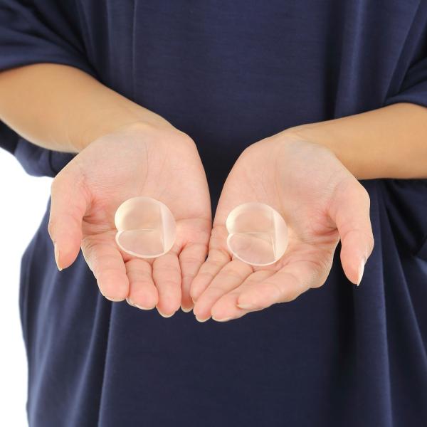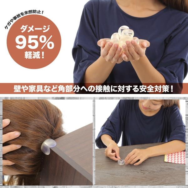 (素材)ポリ塩化ビニル(PVC)。PVCは、柔軟で弾力があり、衝撃に強いのが特徴です。また、汚れも拭き取るだけで綺麗に払拭出来ます。耐久性や耐疲労性、耐燃性も優れております。 (デザイン・カラー)無色透明タイプ。丸型。透明でシンプルなデザインは、家具の美観を損ねることなくお使いいただけます。粋でスタイリッシュなデザインをお求めの方には、是非オススメです。(サイズ・セット数)高さ:約2.5cm 幅:約2.5cm 上底部:直径約3cm 内角:約2cm。一般的な家具や机の鋭角に「ピッタリ」と取り付けられます。(※取付箇所の高さや幅に関わらず、角であるならば、高さ違い、幅違いも全てカバー致します。)1商品=8個入り。意外と必要な取り付け箇所は多いものです。1回で使い切らなくとも予備としても保管出来ます。大変お買い得な商品です。(特徴)商品は、柔軟性と弾力性に優れおります。赤ちゃんや子供が頭や身体をぶつけても怪我や思わぬ事故の未然防止に役立ちます。粘着テープも付属します。