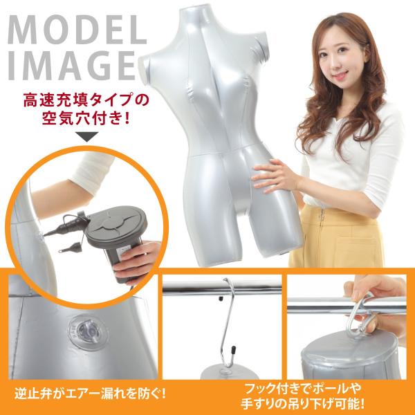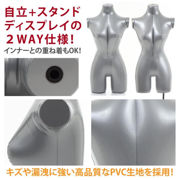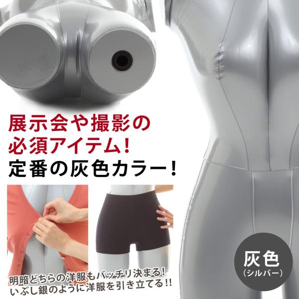 エアーマネキン マネキン トルソー 上半身 ボディ 女性 レディース エアー ビニール 空気 式 服 自立 吊り スタンド ディスプレイ 等身大 撮影 灰色 取説付
