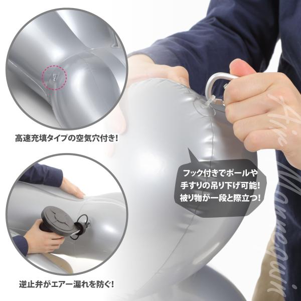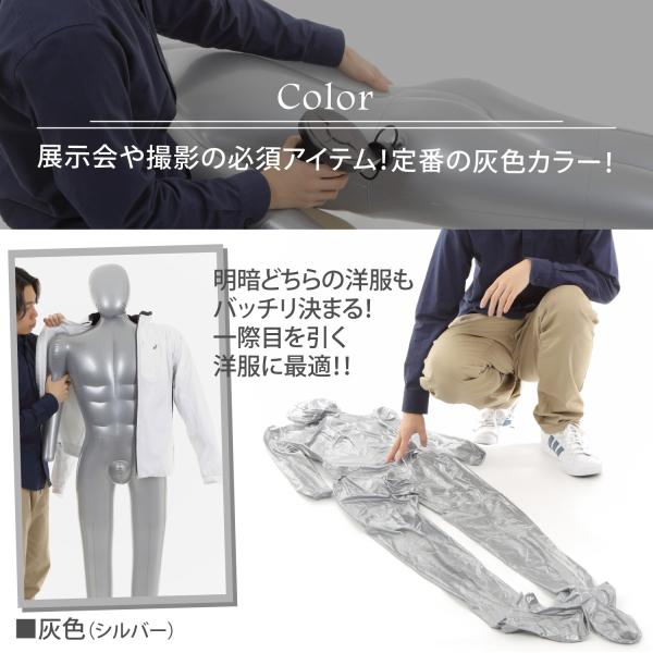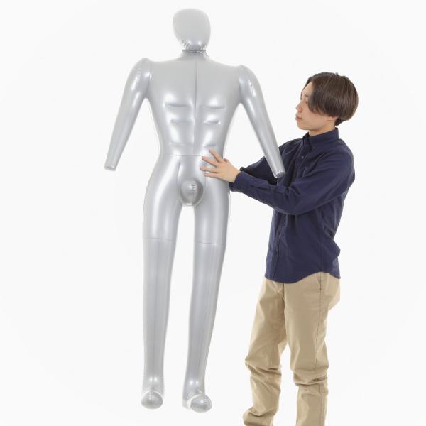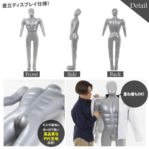 エアーマネキン マネキン トルソー 全身 ボディ 男性 メンズ エアー 空気 式 服 洋服 アパレル 自立 吊り スタンド ディスプレイ 等身大 撮影 灰色 取説付